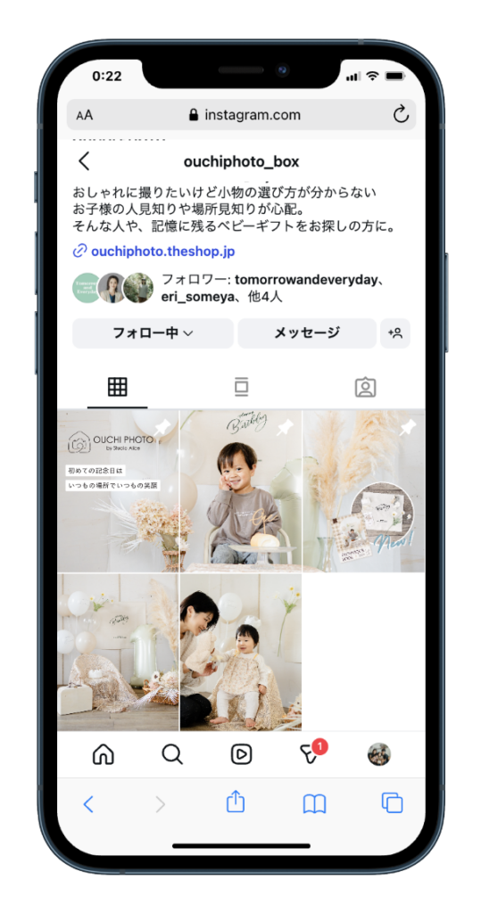 SNSはinstagramを新規開発し、運用中。「映え」写真を思い出として残したいママさん達に少しでもリーチできるように運営しています。