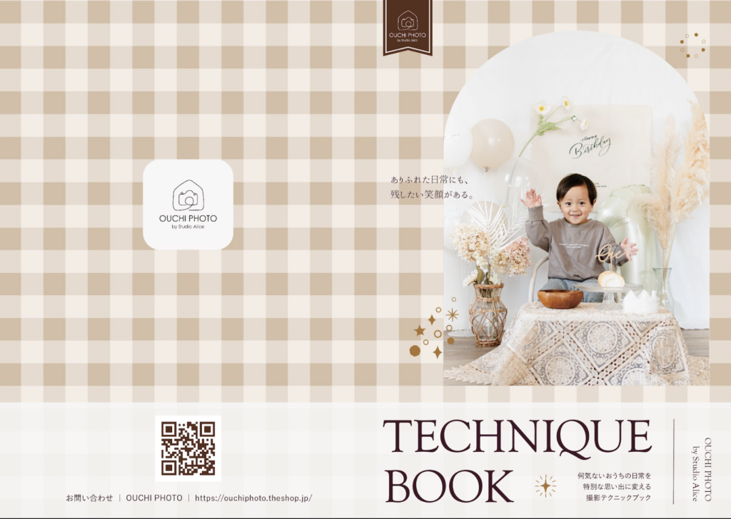 今回の商品のポイントは『誰でも気軽にお家でお誕生日PHOTOが撮れる』というところ。そこで子供を撮影するために気をつけたいポイントや、基本のセットに+αするといいおすすめ小物などをテクニックブックとして同梱させていただきました。